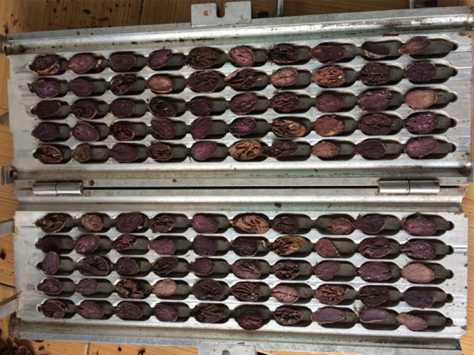 « Cut-test » effectué après séchage pour évaluer la quantité de fèves correctement torréfiées